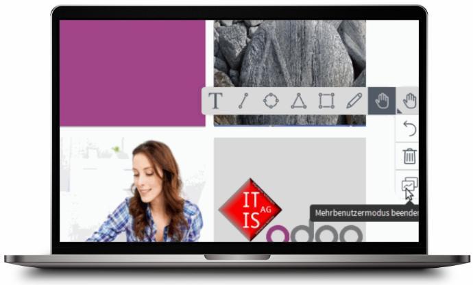 Upload or switch your presentation quick and easy via "drag and drop", even during the current online-meeting, and react directly on upcoming questions or issues, for example during trainings or web-conferences with customers!